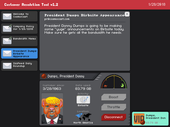 I'm glad you gave your amazing game a new home on itch.io, because I hope that many people might find their way to it on here! While it's a serious game in the sense of its theme (net neutrality), you managed to implement a "Papers, Please"-like in a wonderfully designed setting. All the pixel portraits of the customers are just gorgeous! That's why this game was one of my absolute favorites of the Global Game Jam 2018, so I felt the urge to write a recommendation article about it as well as creating a little gameplay video of it. :) Thanks for your amazing game, I hope your future projects will go as well as this one! <3